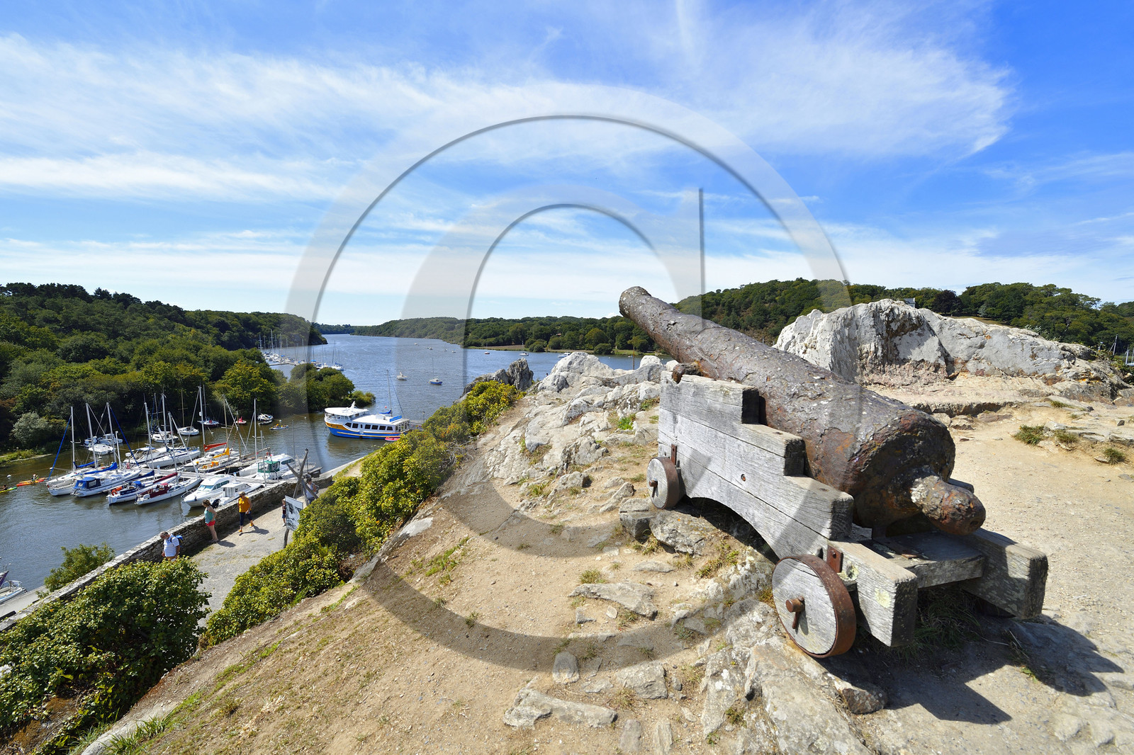 France, Morbihan (56), La Roche-Bernard, le site du Rocher, un des canons du vaisseau de guerre franÁais Le Juste coulÈ durant la bataille des Cardinaux en 1759