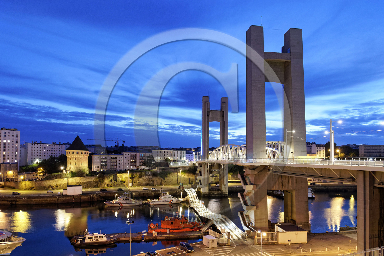 France, Finistere (29), Brest, le Pont de Recouvrance est un pont levant qui franchit la Penfeld et la Tour de la Motte-Tanguy (musÈe du Vieux Brest)